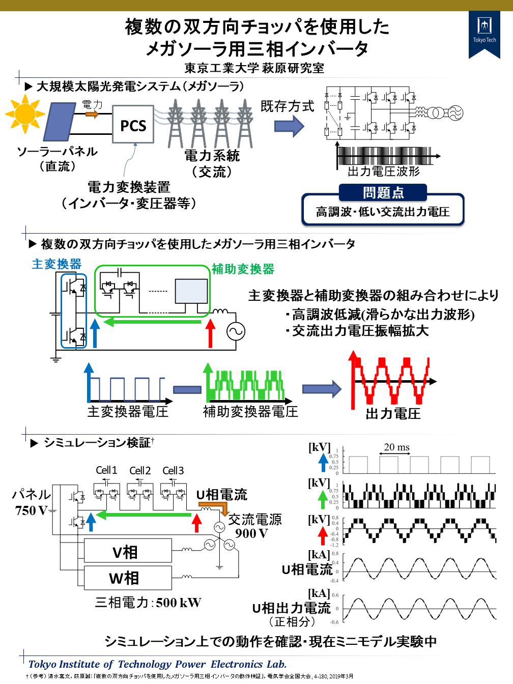 清水嘉文,萩原誠:「複数の双方向チョッパを使用したメガソーラ用三相インバータの動作検証」,電気学会全国大会, 4-180, 2019年3月