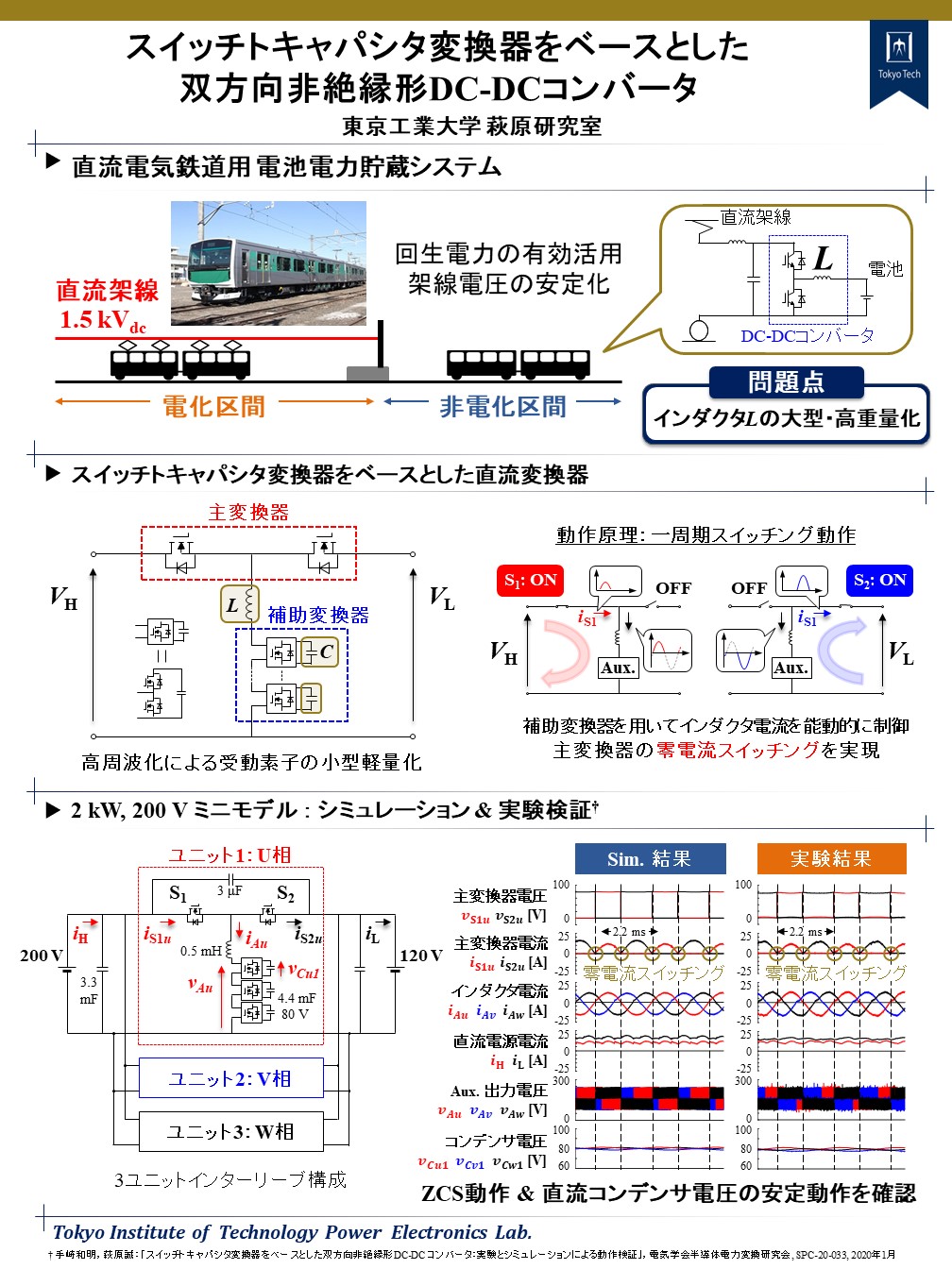 手崎和明,萩原誠:「スイッチトキャパシタ変換器をベースとした双方向非絶縁形DC-DC コンバータ:実験とシミュレーションによる動作検証」,電気学会半導体電力変換研究会, SPC-20-033, 2020年1月